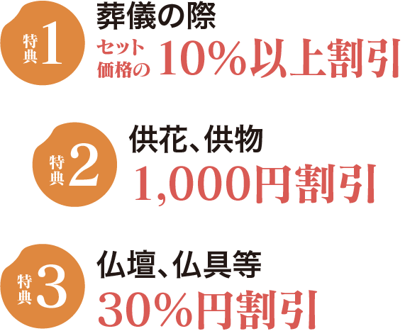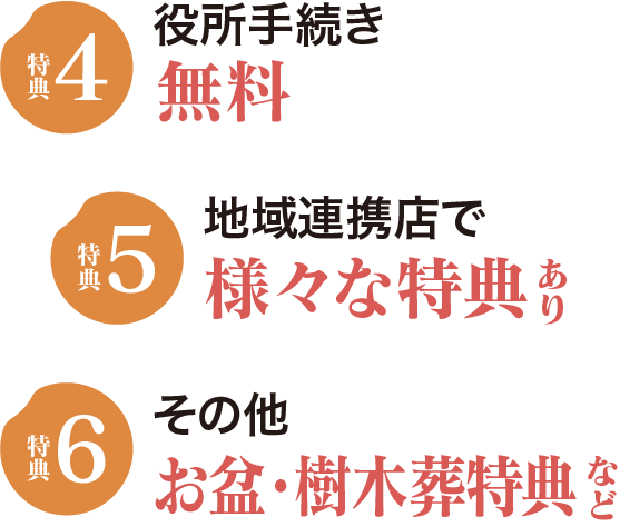 入会後は葬儀費用の割引や各種特典が受けられ、ご本人・ご家族の葬儀に幅広くご利用いただけます。